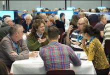 Nederland/Nijmegen : 05-03-2015 G1000 in de Jan Massinkhal Nijmegen. Ongeveer 600 Nijmegenaren zijn bij elkaar gekomen om allerlei plannen te verzinnen die de stad leuker, mooier en leefbaarder maken G1000 is een initiatief voor en door burgers. Foto: Bert Beelen/HH