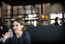Nederland/Nijmegen : 13-10-2015 Angela Verkuijlen, nachtburgemeester in restaurant de Portier voor Het Gesprek. Theatermaker en -docent. Oprichtster Toilettheater the Plees to Be. Foto: Bert Beelen/HH