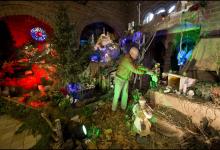 Nederland/Huissen: 29-11-2014 Koster Albert Hendriks in grootste kerststal van Gelderland in de kerk Heilige Martelaren van Gorcum in Huissen. De afgelopen 3 weken werkten 11 vrijwilligers 3 avonden per week aan het opbouwen van het kersttafereel. De kerk in Huissen-Zand sluit per 2015. Foto: Bert Beelen/HH
