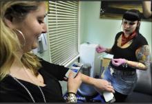 piercing; dermal anchor; huidanker; tattoo; tattooshop; piercer; infectie; hygiene; steriel; handschoen; huid; onderhuids; trend; trendy; jongeren; scene; mobieltje; telefoon; camera; foto