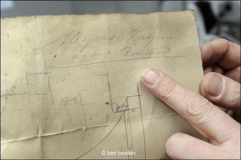 Restaurateur Ronnie Meijers van museum Het Valkhof met 2000 jaar oude Romeinse amfoor waarin hij een tekening vond van zijn overgrootvader Jos Meijers die een siersmederij had in Roermond. Deze tekeningen waren constructieschetsen van een kozijn in neorenaissancestijl met schets van gotische bogen en de naam 'Meijers-Rietjes mr smid Roermond stond erop. De kruik is rond 1885 geschonken aan de gemeente Nijmegen en in die periode ook gerestaureerd met veel gips en veel gevouwen papier (met o.a. de schets van Meijers) om het gips aan de achterzijde te ondersteunen. Restorer Ronnie Meijers from The Museum Valkhof with 2000 years old Roman amphora in which he found a picture of his grandfather Jos Meijers who had an ornamental blacksmith in Roermond. These drawings were sketches of a frame structure in neo-Renaissance with Gothic arches and sketch of the name "Meijers-mr smith Roermond Straw insisted. The jar is around 1885 donated to the city of Nijmegen and restored in that period with great cast and lots of folded paper (with the outline of Meijers) to plaster on the back support.