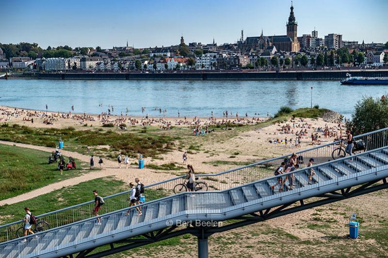 Nijmegen/Nederland: Het Nijmeegse Waalstrand is op 15 september druk bevolkt met zonaanbidders. Foto: Bert Beelen/ANP/Hollandse Hoogte