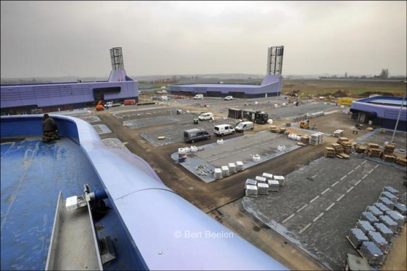 Nederland/Roermond: 21-02-2008. Overzicht vanaf het dak van het Retailpark in aanbouw. Retail Park Roermond is een winkelcentrum met grootschalige winkels en horeca voorzieningen Foto: Bert Beelen/Hollandse Hoogte