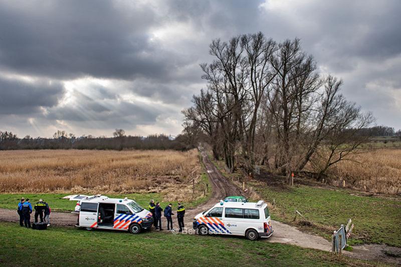 Politie zoekt met drones in hoogwater gebied Ooijpolder naar eventueel achtergebleven daklozen die er steeds vaker bivakkeren in tentjes en die in gevaar zouden kunnen komen door het stijgende water in de uiterwaarden van de Waal