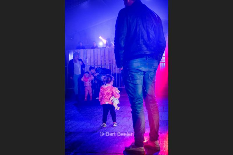 Nijmegen/Nederland: Vader laat zijn kleine meid (met pop onder de arm) de dansvloer ontdekken tijdens een kinderdisco op het bevrijdingsfestival. foto: Bert Beelen/HH