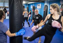 vrouw; vrouwen; meiden; zelfverdediging; zelfvertrouwen; vechtsport; boksen; conditie; overwicht; kracht; sterk; bokszak; sparren; sparpartner